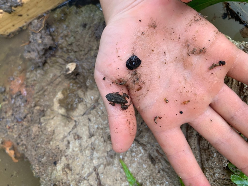- keeping a tadpole and taking care of it until it became a frog