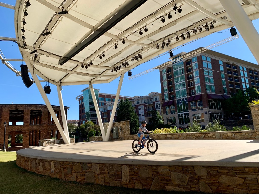 The wide sidewalks, water features, green spaces, walking paths, bridges and empty stages make a perfect canvas for a day of fun – especially on weekdays when nothing is too busy.